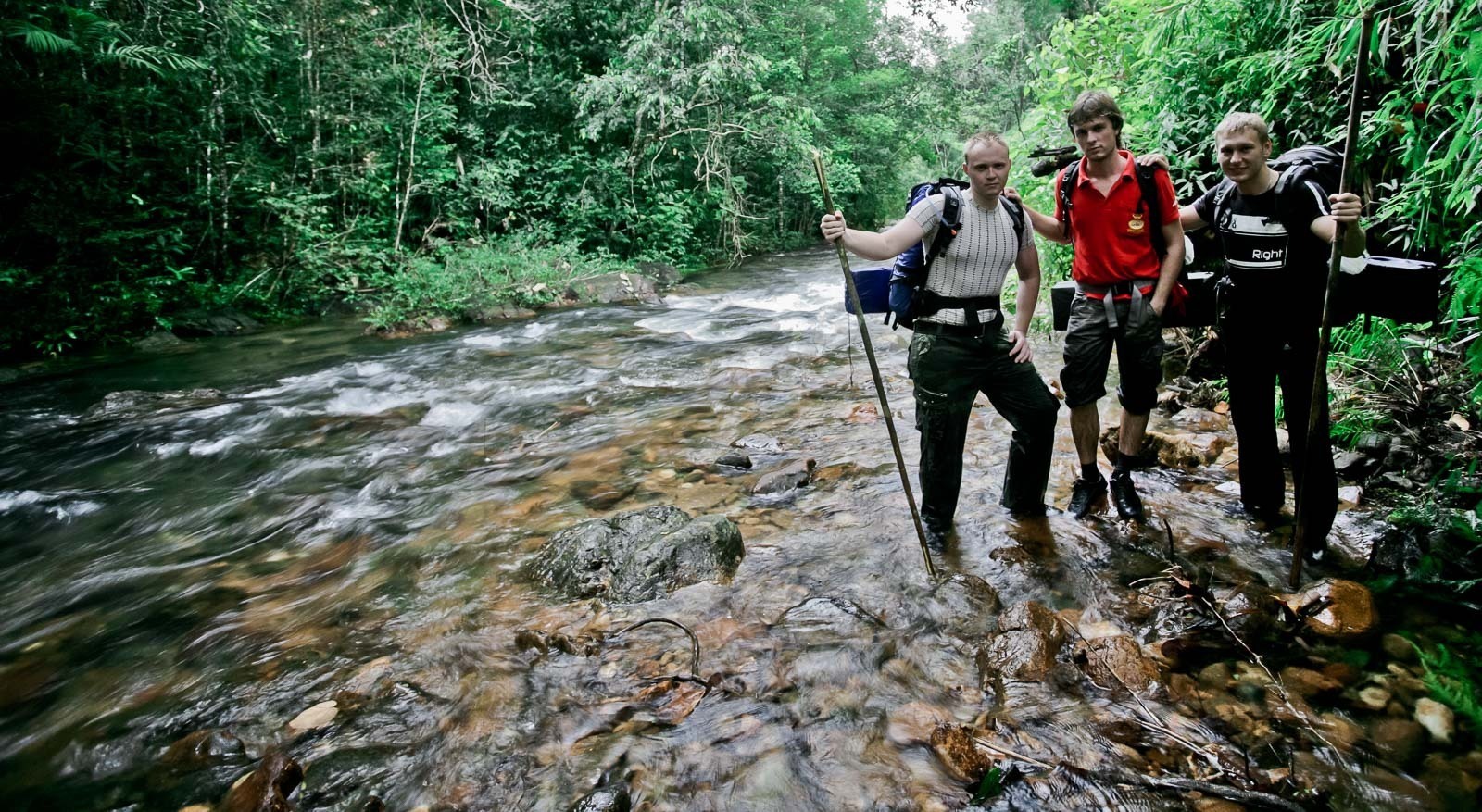 Группа Лайт ставит лагерь в живописном месте, впрочем горная группа тоже не останется в долгу и поставит палатки в очень красивом месте на берегу реки недалеко от небольшого водопада, среди сосен.